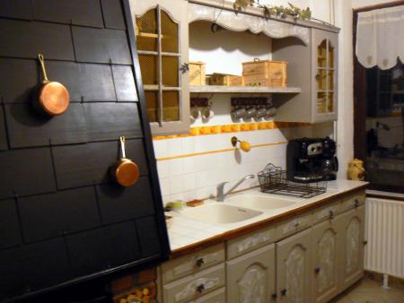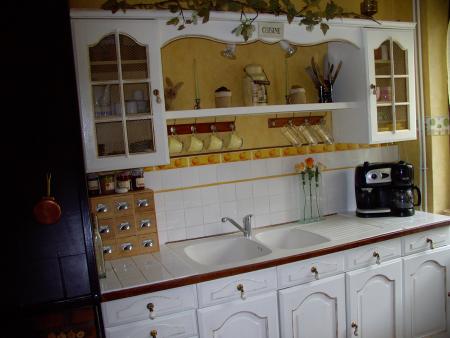 Notre carrelage ayant été changé à cette occasion (beaucoup plus clair), j'ai repatiné mes éléments de cuisine.