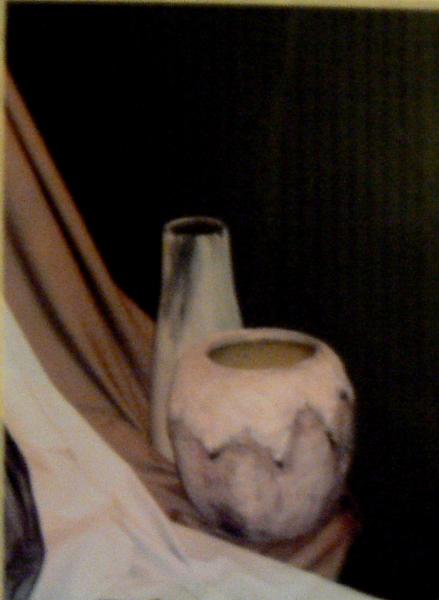 Les vases en vitrine sont réalisés en papier maché.